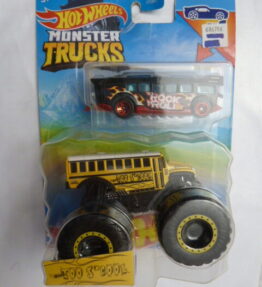 Hotwheels – 2021 – Monster Trucks -2 pieces – TOO S’ COOL – Yellow school bus and black tour bus