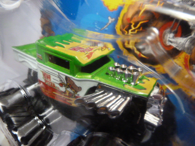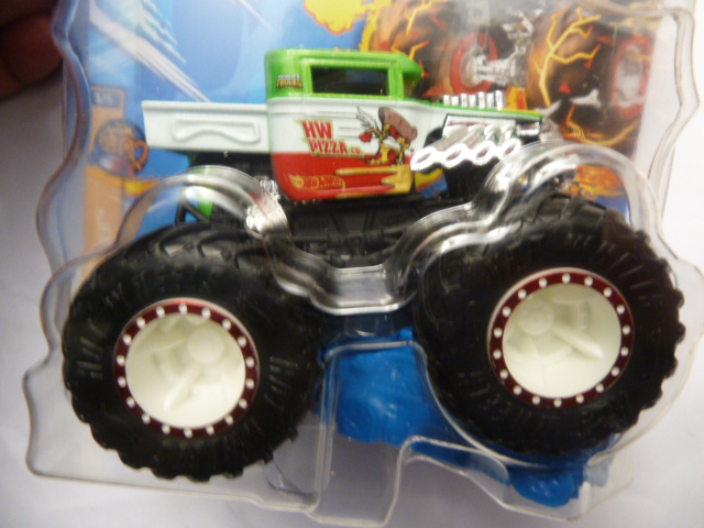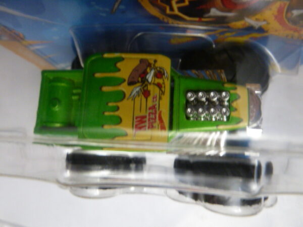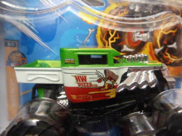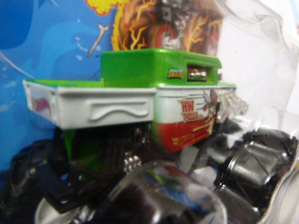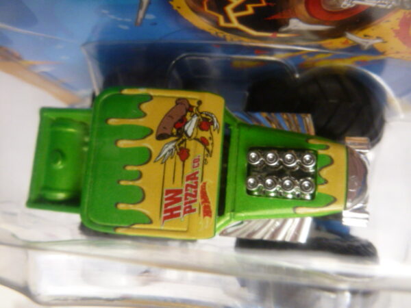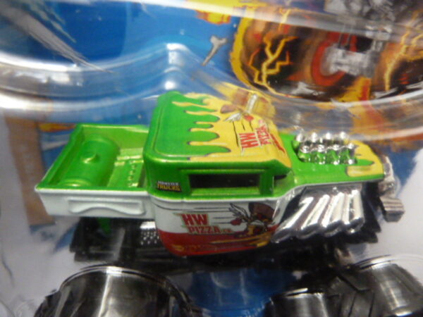/ Hotwheels – 2023 – Monster Trucks – Single – HW PIZZA co. – Snack Pack – 3/5 – Green and white