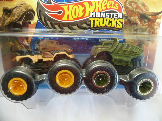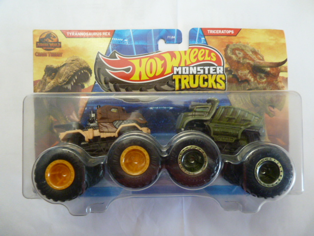 / Hotwheels – 2024 – Monster Trucks – Duos – Jurassic World – Chaos Theory – TYRANNOSAURUS REX vs TRICERATOPS