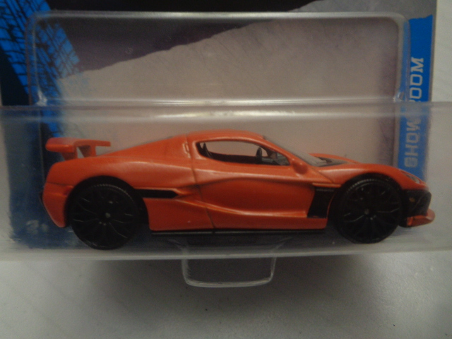 Majorette, Showroom, RIMAC NEVERA, miniature model toy car diecast of original full electric sports car model in scale 1 : 64 and in orange color.