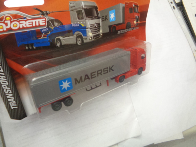 Majorette -Transporter – MERCEDES BENZ ACTROS – Truck MAERSK container transporter – Red and grey