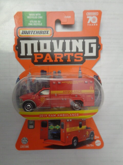 / Matchbox – 2022 – 70 Years Edition – Moving Parts – 2019 RAM AMBULANCE – 26/54 – Red – Metal base