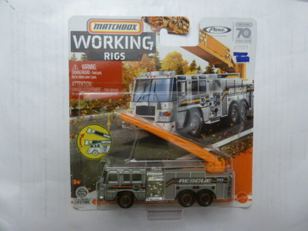 Matchbox – 2022 – Matchbox 70 Years Special Edition – Working Rigs – PIERCE QUANTUM AERIAL LADDER TRUCK – FIRE ENGINE – 10/16 – Silver