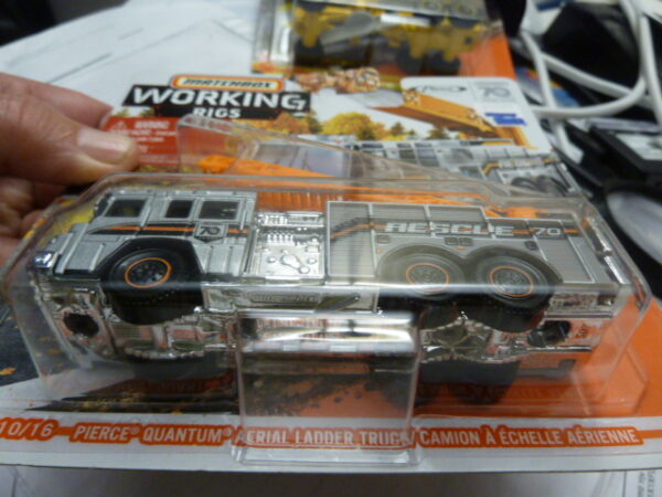 / Matchbox – 2022 – Matchbox 70 Years Special Edition – Working Rigs – PIERCE QUANTUM AERIAL LADDER TRUCK – FIRE ENGINE – 10/16 – Silver