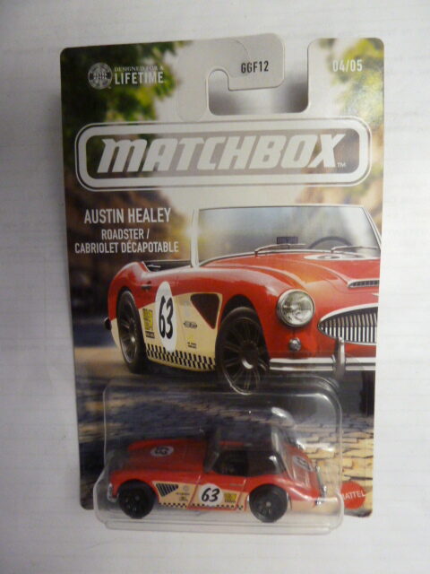 Matchbox – 2025 – Long Cards – AUSTIN HEALEY ROADSTER / CABRIOLET DECAPOTABLE – 04/05 – Red – Metal base