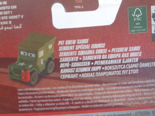 / Mattel – 2021 – Disney Pixar Cars – PIT CREW SARGE – SERGENT SPECIAL COURSE – SARGENTO – Military Willys MB jeep – Army green