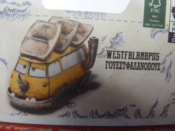 Mattel Disney Pixar Cars WESTFALANAPUS on the Road, Volkswagen Minibus in cream yellow color