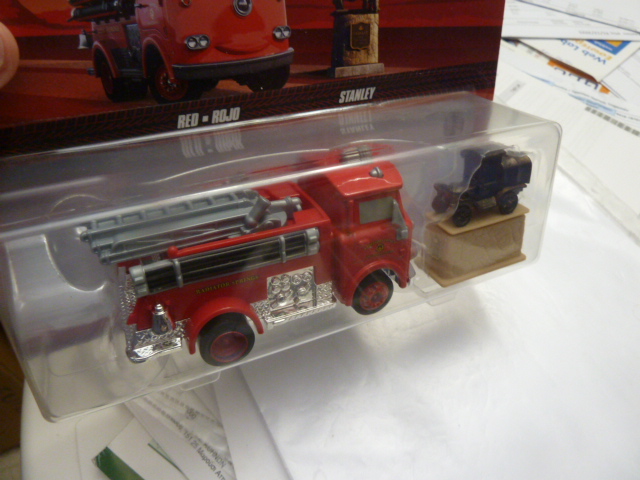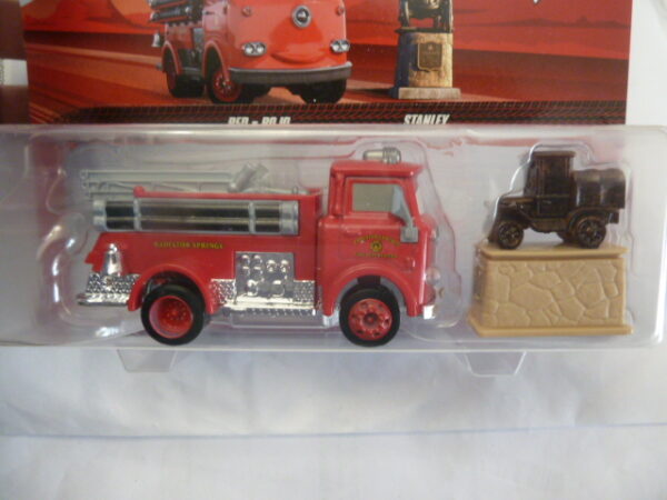 Disney Pixar Cars – Duos – RED fire engine wit metal base and STANLEY – miniature truck in black on base